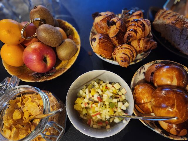 Eveil à la gourmandise avec le petit déjeuner fait maison et ses produits locaux.